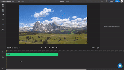 To cut a video, select it in the timeline by left clicking on it, move the yellow play-head to the desired time you want to make a cut and use the "Cut" button on the left side of the screen or simply press "S" on the keyboard. Now your clip will be split in two separate parts that you can move around as you wish.